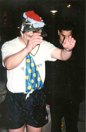 Tamara with a silly hat. Steve is ready to rumble.