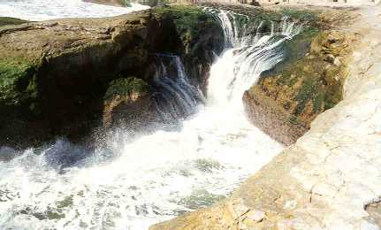 The waves splashing into the rocks. We crossed a fence that said "Do not cross" to take this picture.