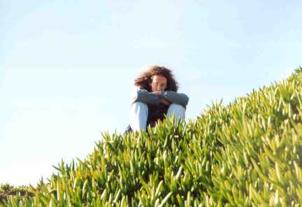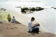 Staring at the sea, lost in thought.