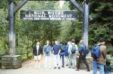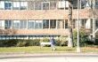 The entrance to the university as the trees start to bud.