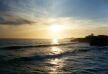 The sun starts to set at the beach.