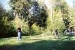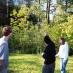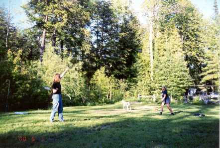 I'm teaching Allison to point at the shuttlecock. Avery watches and learns.