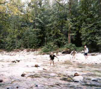 We crossed a very cold river to sit down for lunch at Lynn Valley,